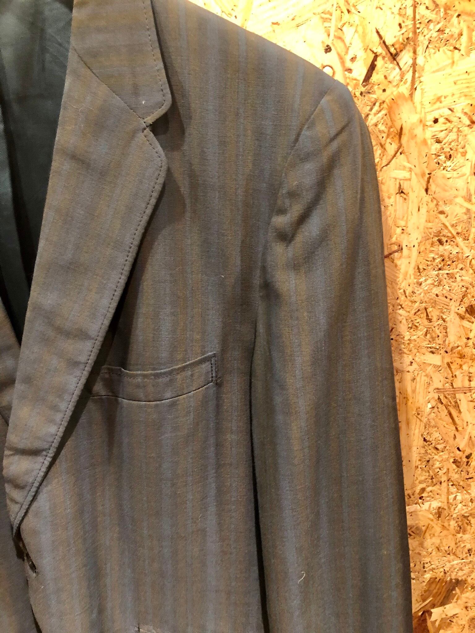 グリーンでストライプのブレザーです。 ブレザーはサイズが大きいものばかりですが、こちらのブレザーはめちゃくちゃサイズがいいです。